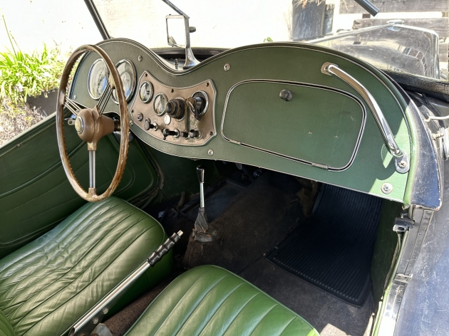 Item #68854 : Original period manufacture. For Sale, our 1952 MGTD, aka "Raven", more photos and description to follow. Basically an un-restored, numbers matching car, never taken apart. Complete with top, tonneau cover, side curtains, luggage rack, tire cover and lots, lots more. Purchased out of dry, long term storage since the mid-1980's. Happy Thanksgiving.