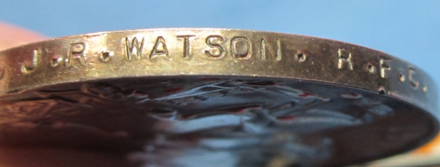 Original period manufacture. Silver, WWI British War Medal, named on the edge to 103291 PTE.1.J.R.WATSON.R.F.C.. Ancestry and Fold 3 provide some interesting information, the document providing basic service information on RNAS, or RFC trade classifications, numbers 103261 through 103353, his is the only listing stating Aerial Gunner. In addition, an enlistment document gives his date of birth as 1886, town, Colorado, United States. Copies of these documents are included with the medal.