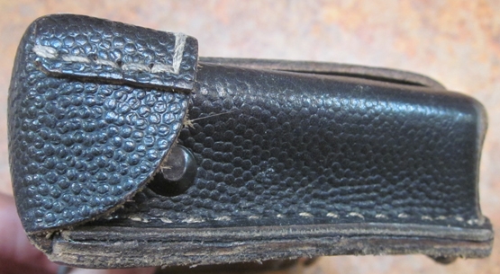 Item #68464 : Original period manufacture. Pebble grain three pocket ammunition pouch in near new condition. Rawhide dividers are in place, no visible markings.
