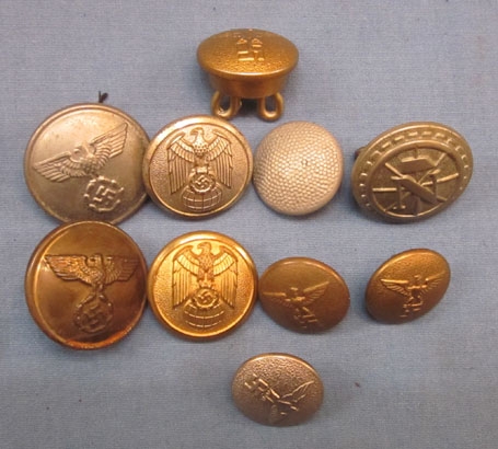 German WWII Assorted NSDAP Coat Buttons, Lot of 8