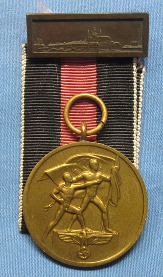 German WWII Czech Occupation Medal, Ribbon & Prague Castle Bar
