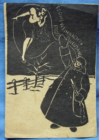 German WWII Feldpost Christmas Postcard 1941, Field Made, Panzer AOK 2