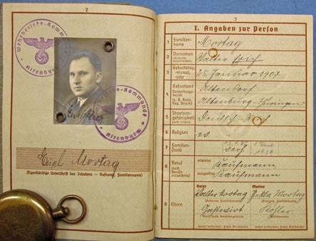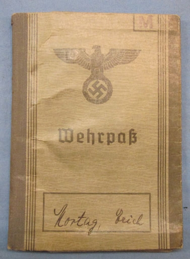Original period manufacture. Standard Heer Wehrpass, issued to a soldier called up in March of 1939. Photo in cover, numerous entries, including his last unit assignment with Grenadier Regiment 922 (243rd Static Infantry Division), with a posting to the Atlantic Coast in October of 1943. This division was destroyed in the Battle of Normandy, with the survivors entering captivity after the fall of Cherbourg. Quite likely there is a story here, worthy of research
