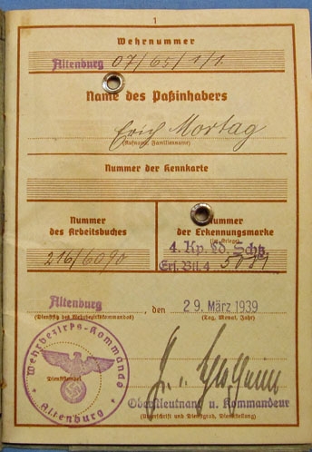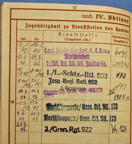 Photos of German WWII Heer Wehrpass, March 1939, Gren. Rgt 922, Normandy Unit