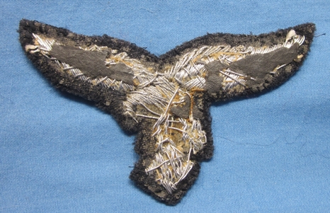 Original period manufacture. Fine quality wire embroidery of the early pattern Luftwaffe coat eagle, collectors refer to this as the "drooptail" eagle. Looks to have been removed from a uniform.