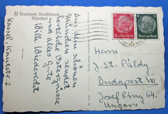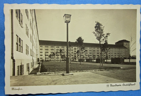 Original period manufacture. Commercially produced black and white postcard of the barracks of SS-Regiment Deutschland in Munich. Period inscription on the reverse.