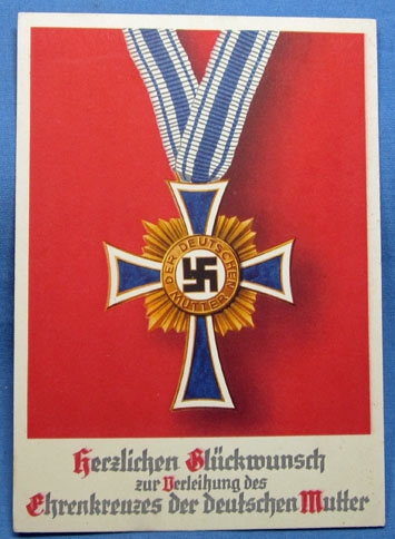 Original period manufacture. Colorful patriotic postcard, congratulating the awarding of the German Mothers Cross. Never mailed.