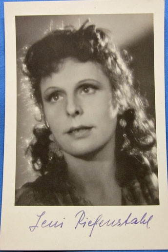 Original period manufacture. Commercially produced card of famed film producer Leni Riefenstahl, with her autograph below. Unused reverse.