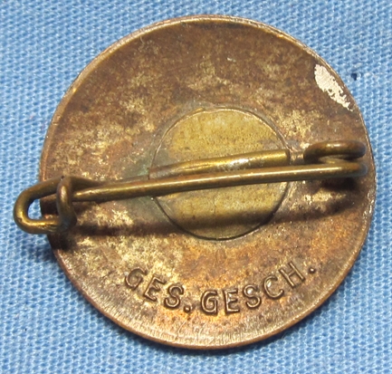 Original period manufacture. Small size NSDAP badge, pinback, pre RZM I believe, only Ges.Gesch. on the reverse.