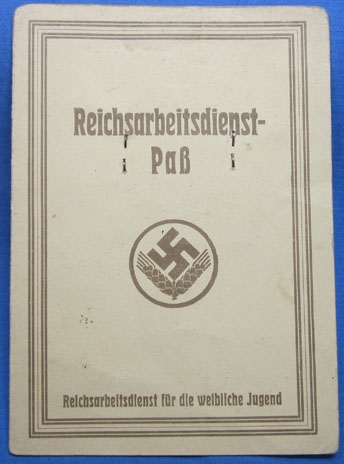 German WWII RAD Pass, Photo ID, Young Woman, 1941