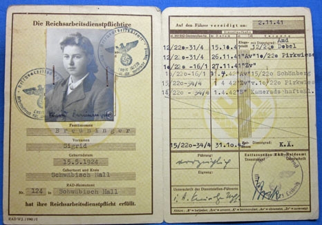 Photos of German WWII RAD Pass, Photo ID, Young Woman, 1941