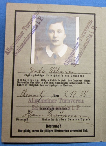 Original period manufacture. Pocket size photo ID booklet, issued to a young woman in 1935.