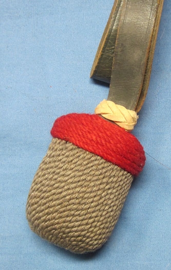 Original period manufacture. Gray leather strap still tied with it's original string. The strap remains pliable, the colors vibrant.