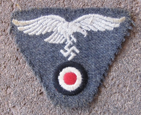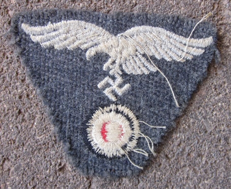 Item #68546 : Original period manufacture. Cotton embroidery on Luftwaffe blue wool, removed from a hat.