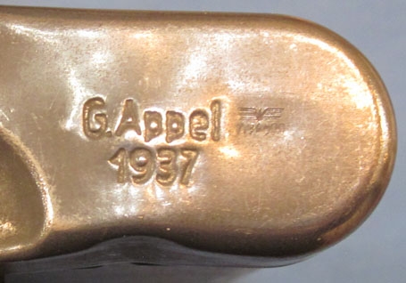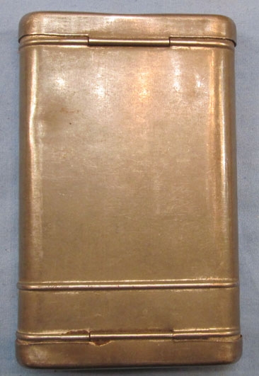 Item #68948 : Original era manufacture. Issue rifle cleaning kit for the K98 rifle. Pressed steel tobacco can with a steel patina metal surface finish, maker marked G. Appel, 1937.The contents include, linked pull-through, steel oiler, and both cleaning brushes, the floor plate tool is missing of course, however the oiler and pull through chain are also maker marked APPEL and dated 1937.