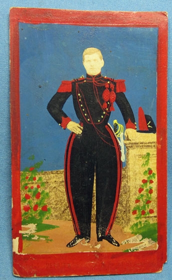 Item #68757 : Original period manufacture. A wonderful example of a 19th century attempt to add color to a period image. The subject is a French enlisted artilleryman. Handwritten name on the reverse.