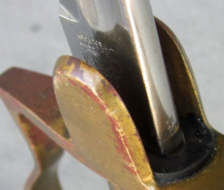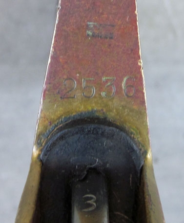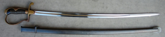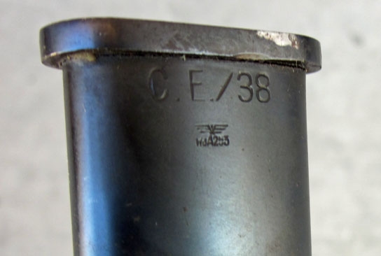 Item #68567 : Original period manufacture. Issue edged weapon for enlisted troops required to wear the saber. Produced by Eickhorn in 1938, it has numerous waffenamt proofs on the blade, guard and scabbard. Both the scabbard and guard are serial numbered, in this instance, non-matching, scabbard 2576, guard 2536, close but no cigar. However both the scabbard and guard are marked C.E.38 (Carl Eickhorn 1938), so matching by maker. The polished steel blade measures 28 inches in length, no corrosion issue, running straight and true. Black composition wrapped grip, bound with two strands of twisted wire. Gilded brass guard, backstrap and pommel with a brass patina finish. Dent free blue steel scabbard, missing the throat screw.