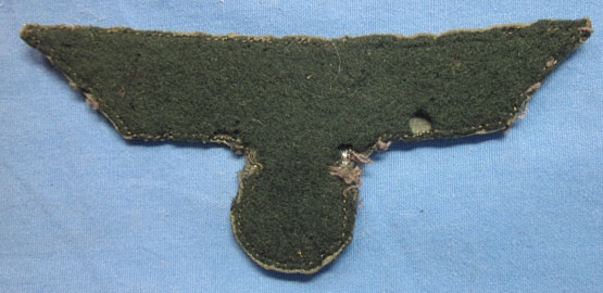 Item #68930 : Original period manufacture. Silver flatwire embroidery on dark green badge cloth. Removed from a uniform.