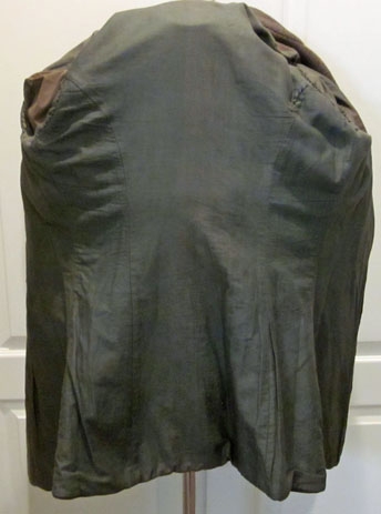 Item #68753 : Original period manufacture. Standard pattern forest green wool service coat retaining it's full complement of USMC enlisted pattern buttons. Full green cotton body and sleeve lining, with handsewn repairs to the lining around the arm openings. Stenciled onto the interior sleeve lining of the right arm is the name L.A. Baumgartner. No moth issues to speak of, the collar has never been pierced for collar discs, size about a 38 long. Ancestry provides USMC muster rolls for a Leo A. Baumgartner from November 1918 to June 1931, with most of the listings showing his assignment to the 9th Reserve Regiment, Central Reserve Area, companies I, L & M. Should be fun doing the research.