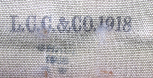 Original era manufacture. A solid example, woven construction belt, with a LC&C maker stamp on both belt sections, adjusting belt and .45 pistol magazine pouch. Strong color throughout, no tears or major staining, just typical service wear and use.