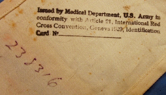 Original period manufacture. Machine sewn red cotton Greek cross on a white heavy cotton armband. Marked reverse. Pretty much storage wear.