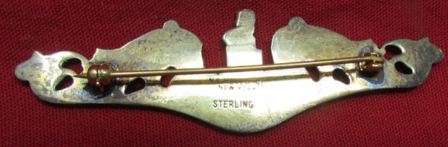 US WWII Navy Submarine Officer Dolphins, NS Meyer, Pinback, Sterling